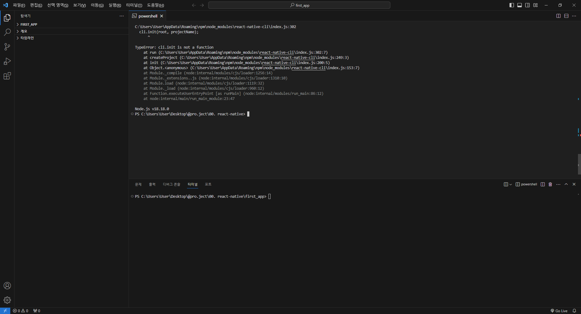 react native cli.init is not a function 에러 본문